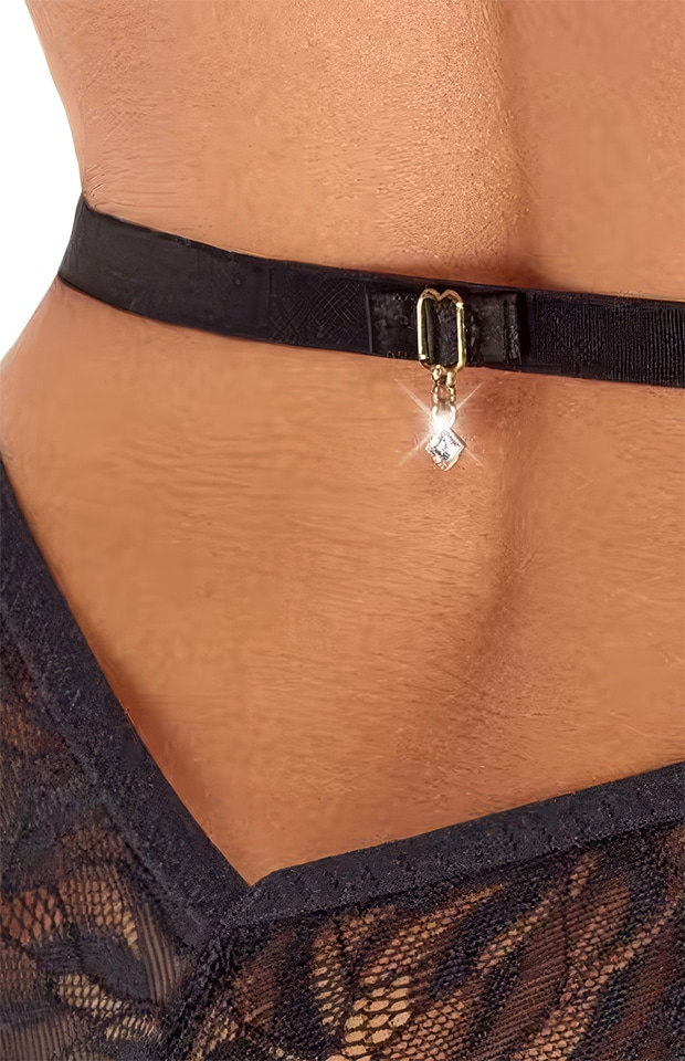 Sort blonde bodystocking med dyb udskæring på fronten fra Kissible. Bodystockingen har åben ryg, men har et elastisk bånd lige over lænden med et fint lille guldsmykke. Hægtes derudover med bånd. Super smuk og elegant bodystocking, som også kan bruges under en blazer med- eller uden en ekstra top/BH. Bodystockingen kommer i en æske og er dermed også ideel som gave. Str. L/XL.